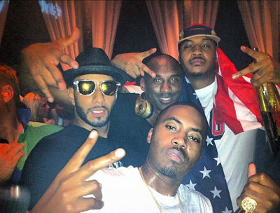 What good is a win if it’s not celebrated? Team USA Basketball hit London’s “The Roadhouse” which was converted into Tao/Marquee for the games, to enjoy champagne and performances from Swizz Beats and Nas. Spotted were LeBron James, Carmelo Anthony and Kobe. Also on hand to help his Heat teammate celebrate, Dwyane Wade and his girlfriend, Gabrielle Union.