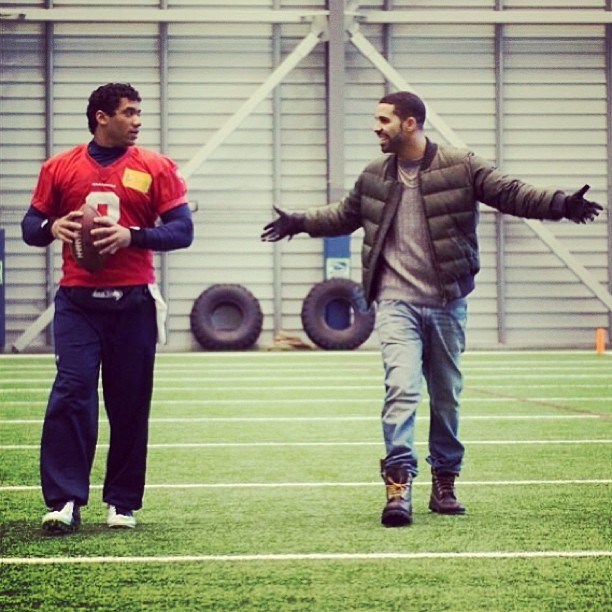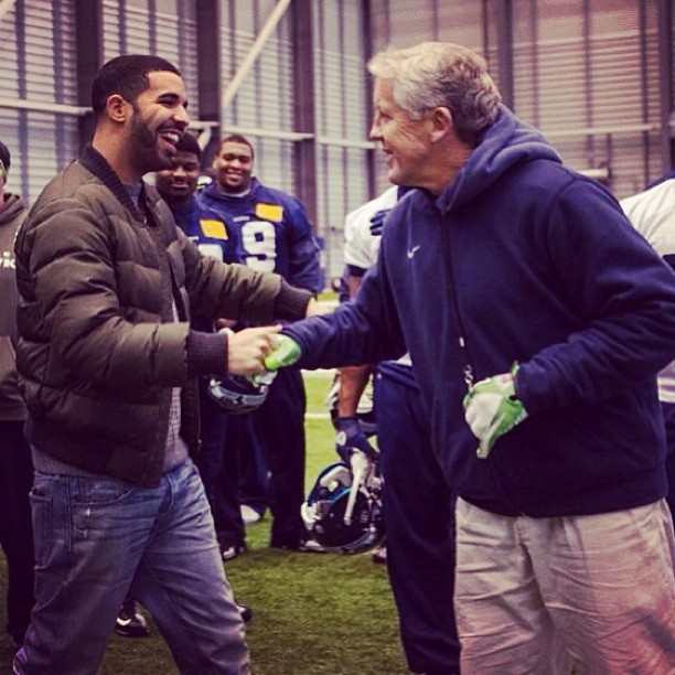 Drake is currently on tour and recently had a stop in Washington. We all know that rap and sports are tightly intertwined, so it makes sense that he would hit up the Seattle Seahawks practice while he was in town. Drizzy flicked it up with QB Russell Wilson and head coach Pete Carroll while there.