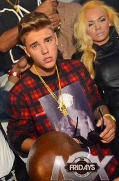 Floyd Mayweather jr. was spotted hanging out with his pal, pop star/ wannabe bad boy, Justin Bieber in Houston on Friday night. The two hit up Nox. a popular strip club. Money May arrived to the club first, around 12:45 a.m. Saturday. Bieber a short time later at 1:20 a.m. Don’t worry, these photos are fine for tender eyes.