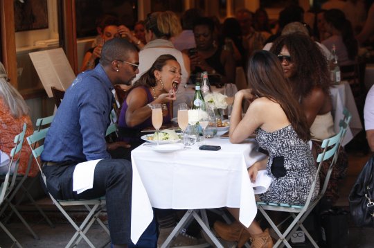 On Friday Serena was spotted having lunch with Heat forward Chris Bosh and his wife Adrienne Williams at Nello’s.