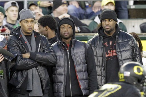 That’s because the Heat reportedly have their targets set on Carmelo this summer. DWade’s knee is a shakey future to bank on. Melo is in the hunt for his first ring and is an offensive machine. Add to that LeBron looking a bit worn down at moments this season. Like he’s tired of shouldering the bulk of the work load, it makws sense.