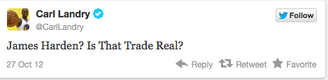 For Harden, Yahoo believes once the trade is complete, Houston will immediatedly move to offer him a max extension before Wednesday’s deadline. Harden was too good to stay a “sixth man” forever. Never forget that the NBA is a business. Check out player reactions from Harden’s ex-Thunder teammates, Kevin Durant & Eric Maynor, his new teammate Jeremy Lin, LeBron James and more: