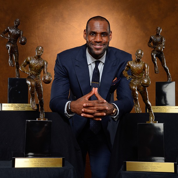 LeBron James wins his fourth MVP award. The vote however wasn’t unanimous. There was one vote cast for Knicks Carmelo Anthony. During the ceremony LeBron expressed how important his teammates were to his success.