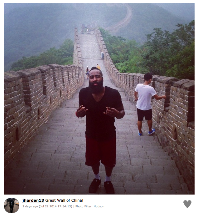 When James was at The Great Wall of China, Tahiry was there too. Obviously a hot tourist attraction but what a coincidence, right? Instagram is the best tea spiller. Check out some of the photos that have people playing connect the dots for this potential romance.