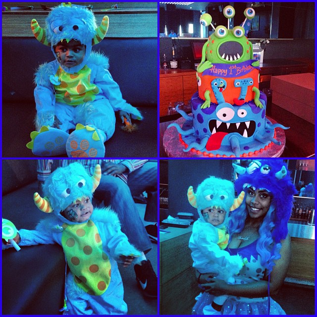 Meanwhile, Derrick Rose’s son, also a Jr. but referred to as PJĀ celebrated his first birthday with a monster bash theme held at Lumen in Chicago. DRose was on hand and in costume.