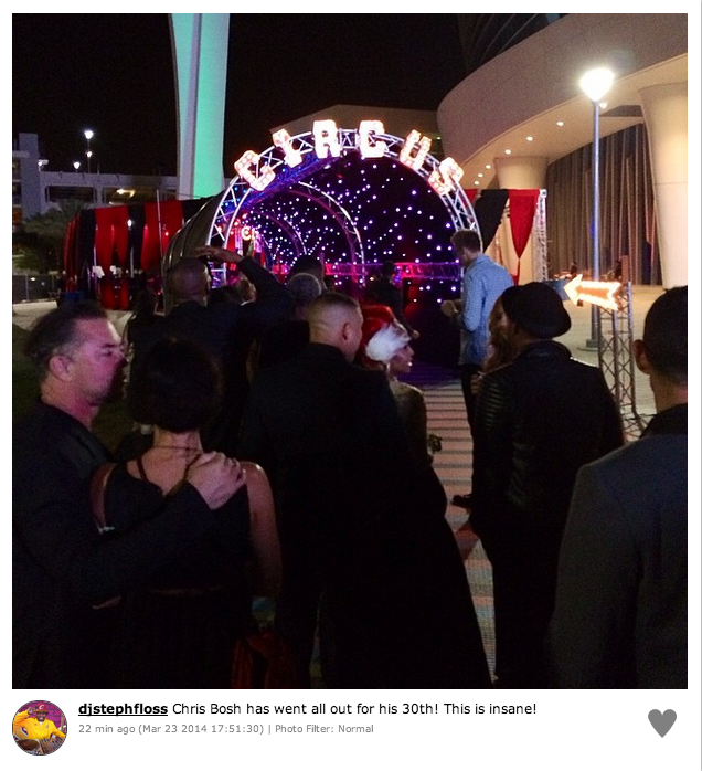 Chris Bosh’s elaborate parties are pretty epic. So you know that means that his 30th birthday party would be an experience. Bosh, his Miami Heat teammates and friends celebrated his 30th with a “Cirque du Noir” theme at Marlins Park. Clowns, a dunk tank that featured Miami Heat coaching staff, Erik Spolestra, Davie Fizdale and Juwan Howard, carnival games and more. The night also featured performance from old school rap group Bone Thugs in Harmony and rapper Ty $.