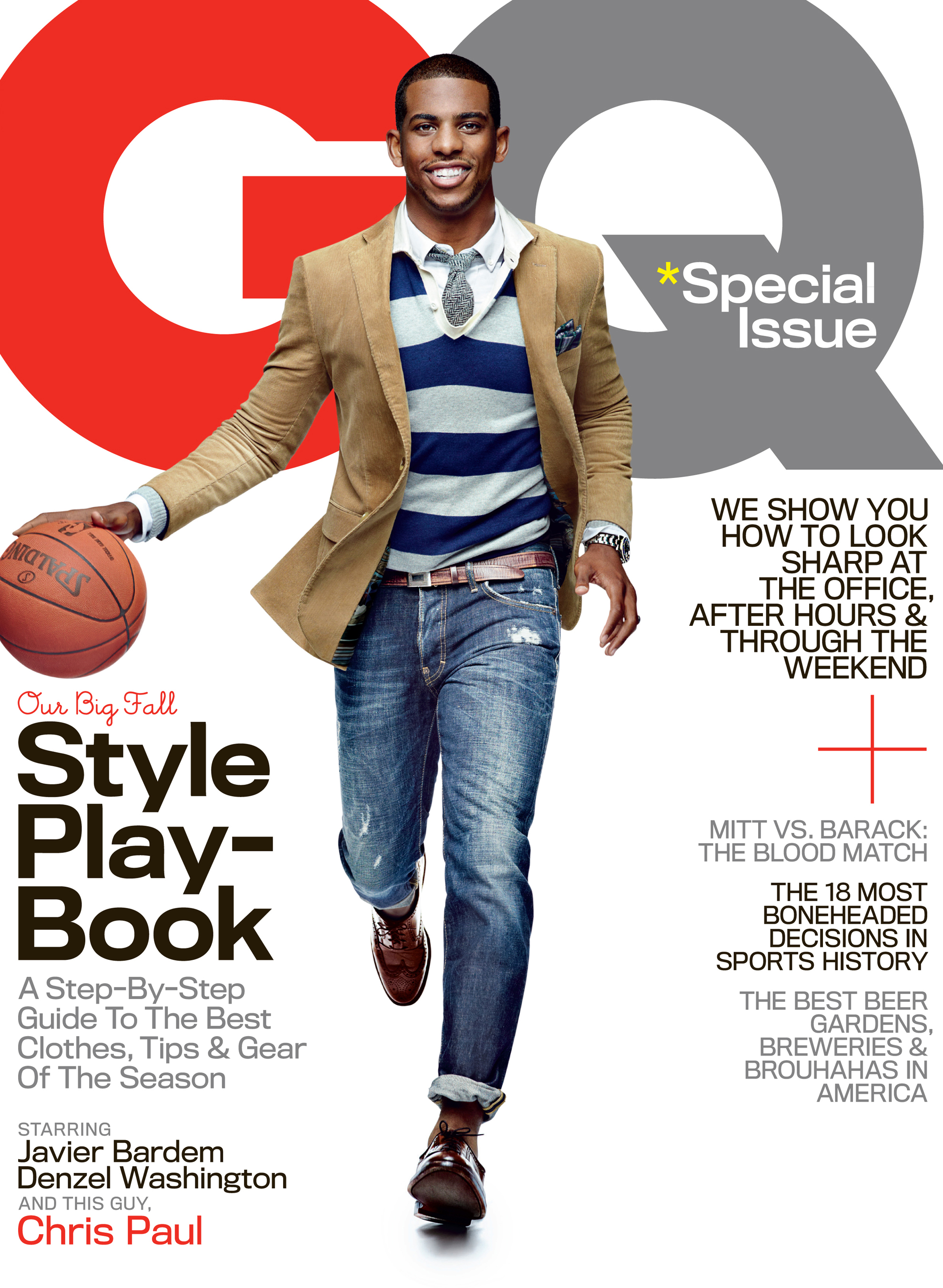 Clippers point guard Chris Paul is gracing the cover of October’s GQ magazine – great choice by the way and excellent styling. Classic but still current looks. In the issue, CP# discusses why he preferred coming to the Clippers over the Lakers in the trade last year and why he likes being “short.” That’s NBA short not regular guy short.