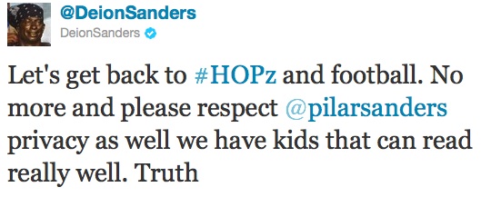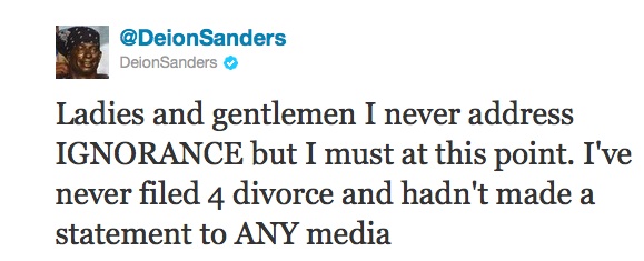 Deion Sanders tweeted today that there is no truth to the rumor that he and his wife Pilar are divorcing. The only problem with this, Pilar made a statement about the situation to Hello Beautiful:
