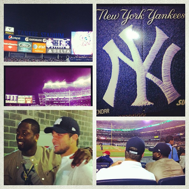 What do you do after you beat the Knicks at Madison Square Garden? If you’re Dwyane Wade you go shopping, hit a few shots with some neighborhood kids and you take in a Yankee game. Dwade watched the Yankees take on the Angels (they booed him when he was shown on the screen until he put on his Yankees cap.) Also in attendance Newly minted Jets QB, Tim Tebow. The Yankees won by the way.