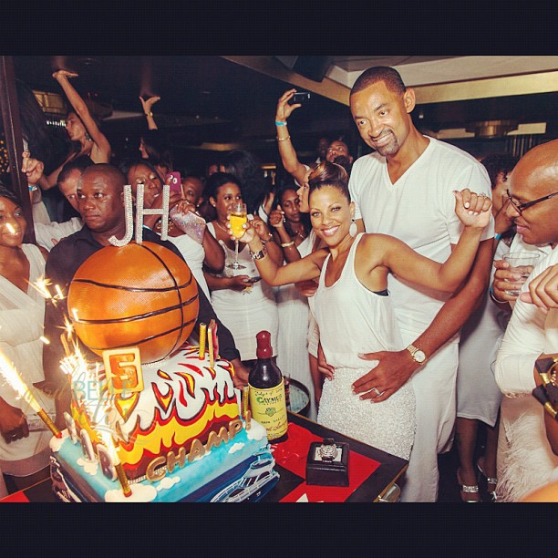 Included in the celebration were the couple’s children, Howard’s teammates Dwyane Wade, Chris Bosh and Udonis Haslem- LeBron is in Vegas training with team USA, former NBA player Michael Finley and of course the Jocks significant others, Gabrielle Union, Adrienne Bosh, Faith Reign and Savannah Brinson.