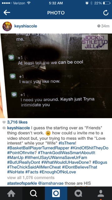 I guess the starting over as “Friends” thing doesn’t work. how could u invite me to a video shoot but, your trying to mess with the “Love interest” while your “Wife” #IsThere! #BasketBallPlayerTurnedRapper #KindOfShitTheyDo #PointOfInvite? #ThankGodIWasSmartAboutIt #ManUp #WhenUSayUWannaSaveUrFam #ButUReallyDont #WhatWouldUHaveDone? #Bogus #TheChickSaidAllMenCheat #IDontBelieveThat #NoHate #Facts #EnoughOfNoLove