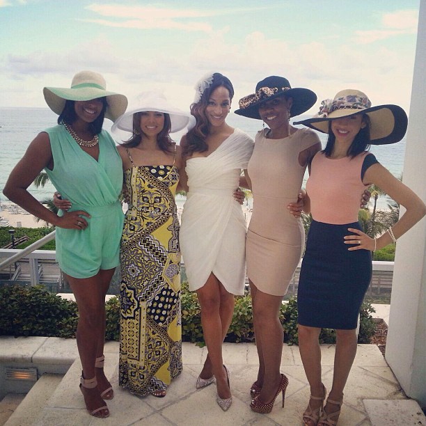 Amaré and Alexis Stoudemire got married last winter on 12/12/12 in a private ceremony in New York. The two held a larger ceremony in Miami for friends and family at the Fontainebleu hotel. The bride also had a girls night out at Mokai the night before the wedding and a brunch on Friday. Lakers Earl Clark and his wife Megan were in attendance as well as Adrienne Bosh. On the grooms side, the Knicks were in the building with JR Smith, Iman Shumpert, Carmelo Anthony and Kurt Thomas were on hand to help celebrate.