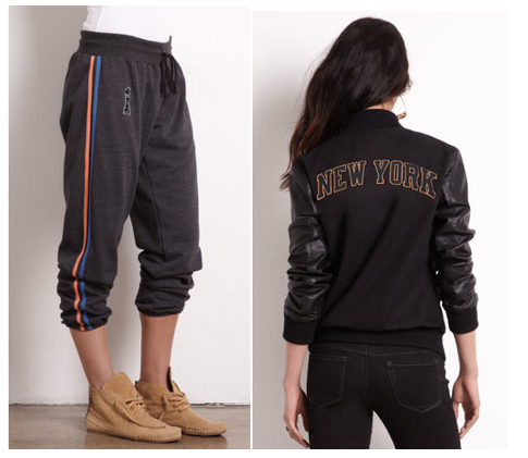 The collection includes casual items like tees and sweats to edgier pieces like a cropped motorcycle jacket, leather hooded vest and leather shorts. Prices range from $59 to $229 and while most of the collection is Knick centered, there are a few other teams included.