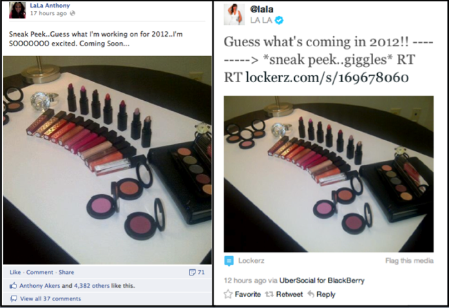 Recently Lala has been pushing various nail polishes and glosses via Market America which is part of the internet empire Loren Ridiger created. Motives is another company founded by internet mogul. The line is scheduled to launch in February.