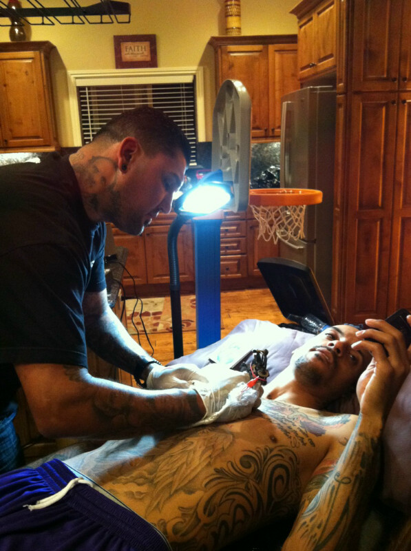 We know Matt Barnes is definitely a part of the ink my whole body crew. Friday night he got new a new tattoo across the middle of his chest (ouch)