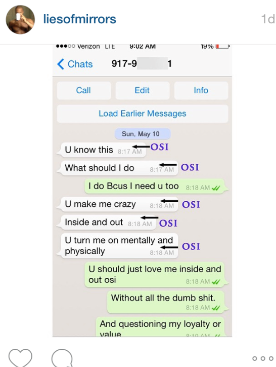 NFL linebacker Osi Umenyiora was married over the weekend to former Miss Universe, Lelia Lopes. Soon after, an Instagram account popped up under the name of @LiesofMirror to “expose” Osi and his alleged relationship with a sidechick.
