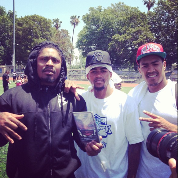 Snoop Dogg Lion held his annual youth football camp at Crenshaw high in LA on Saturday. The event featured several LA area football icons. Onhand were former USC coach and current Seattle Seahawks head coach, Pete Carroll. His Seahawks players, Marshawn Lynch and Richard Sherman. Eagles WR DeSean Jackson, Clippers Matt Barnes and his wife Gloria Govan and retired NFL lineman Williw McGinest.