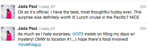 Chris Paul is not only an All-Star point guard, he’s a romantic. CP3 took his wife Jada on a Valentine’s Day lunch cruise on the Pacific.