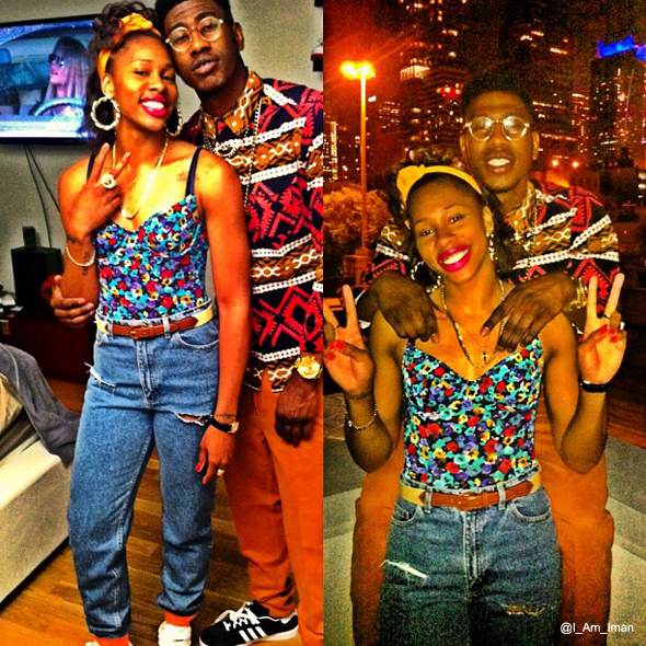 Knicks point guard Iman Shumpert pulled together the perfect vintage ensemble for an 80’s party he attended evoking the spirit of Dwayne Wayne or maybe even a little of “Buggin Out” ( Giancarlo Esposito’s character from “Do the Right Thing”). Cross Colors and leather African medallion is all that’s missing.