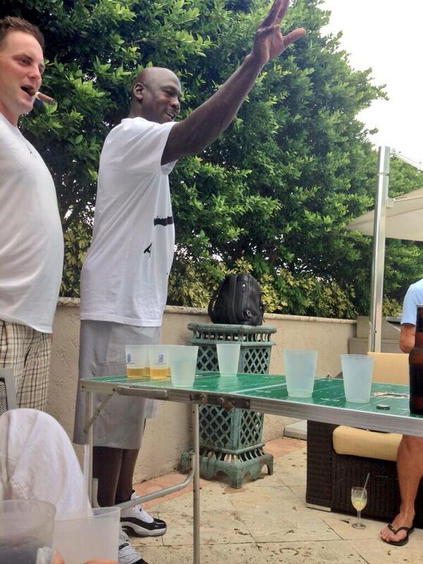 I’ve never played a game of beer pong so I guess I can’t relate to its appeal. But apparently Michael Jordan has. MJ was spotted at the Ritz Carlton in Miami partaking in the college game with friends.
